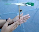Эта классическая игрушка приобрела известность еще до того, когда Леонардо Да Винчи был ребенком, и, возможно, она повлияла на некоторые его аэродинамические идеи. Уверен, и вас она сможет занять на некоторое время. Во всяком случае детям это развлечение запомнится надолго. Все делается своими руками из доступных материалов за 20-30 минут.Нам понадобится следующее:Брусок из мягкой древесины, например, из сосны, сантиметров 20 в длину, 5 в ширину и толщиной сантиметр-два; 25 сантиметровый деревянный стержень толщиной с карандаш (6-8 миллиметров;Дрель со сверлом 6 миллиметров; Острый нож; Капля любого универсального или столярного клея...