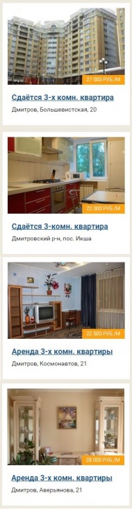 | 3-комн. квартиру в Дмитрове, ул. Космонавтов, славянам, цена 25 000 руб. + счетчики. | | Тел.: 8-906-047-32-57 |